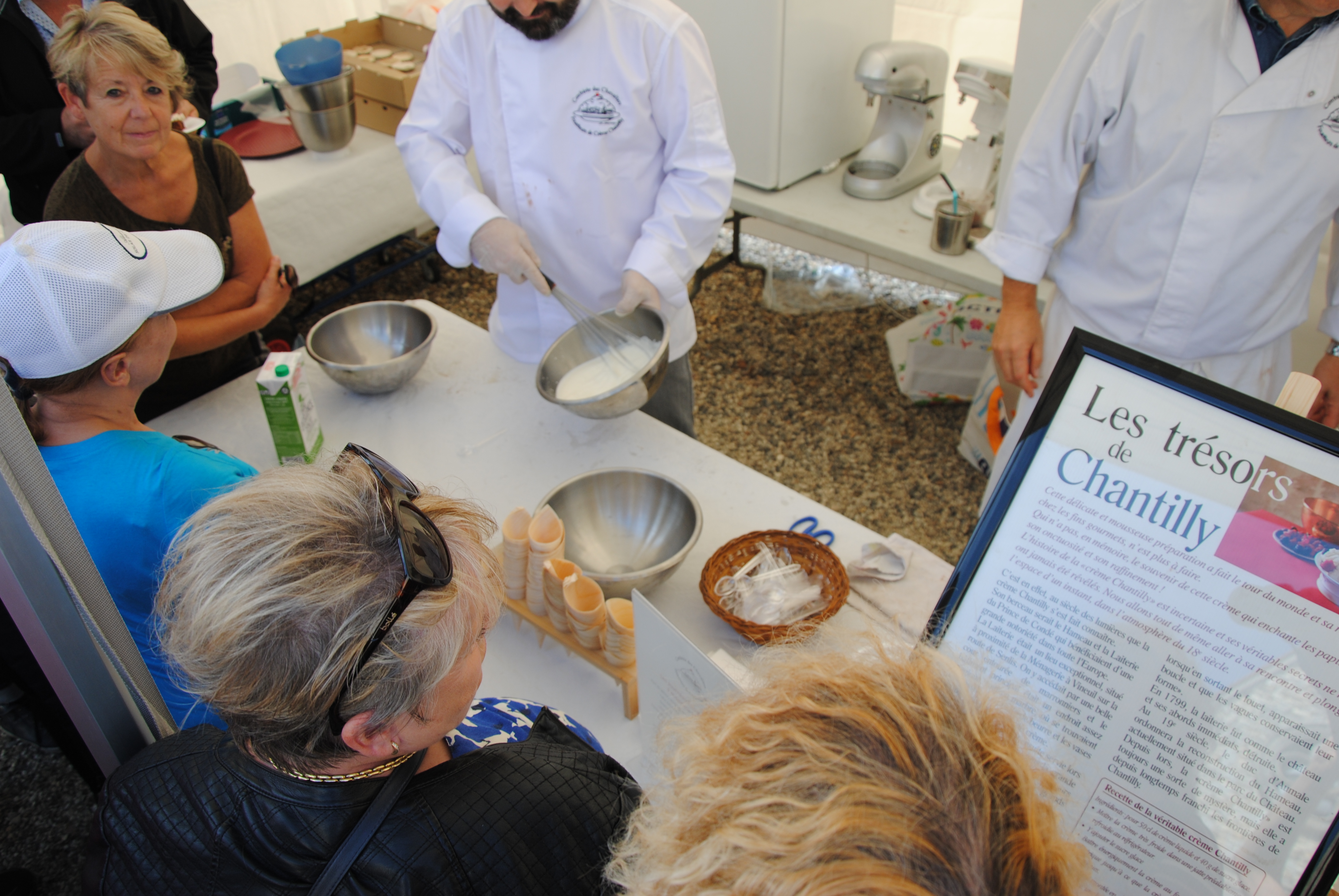 21 juin 2018 : Cour de la Maison Camille à Senlis. A l’occasion de la fête de la musique 2018, stand de dégustation de variantes de Chantilly sucrées.