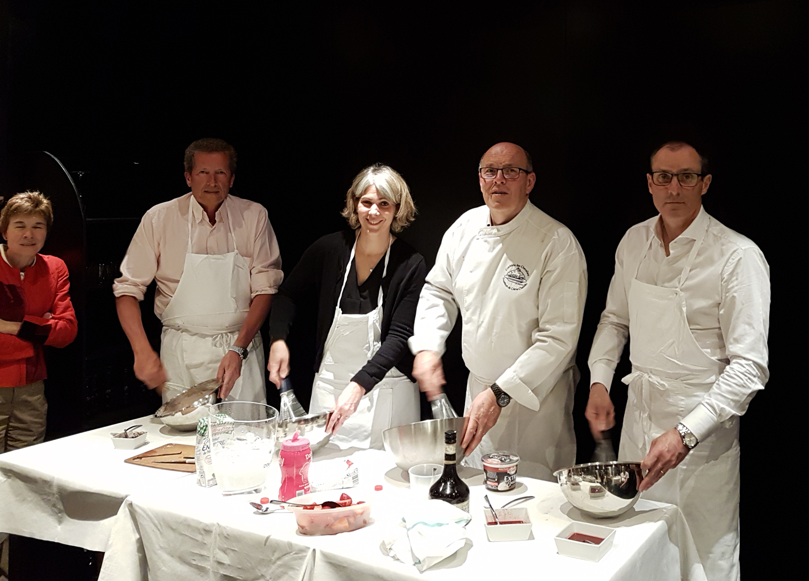 - Chaque personne est en tenue : tablier, toque, cul de poule et fouet